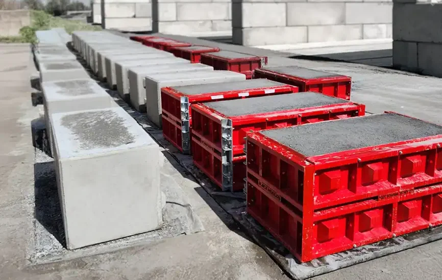 I contrappesi composti da blocchi prefabbricati in calcestruzzo aiutano a controbilanciare recinzioni, recinti, impalcature, motrici e altri macchinari.