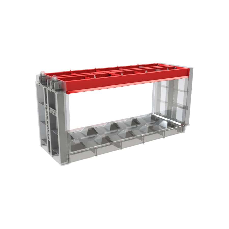 The advantages of the modular design are apparent on various fronts. The top plate can be connected to several side walls to produce concrete blocks of various heights. Worn and damaged parts can simply be replaced. Users of our moulds are not forced to invest in expensive new mould constructions, because the modular design of our products lengthens their lifespan.